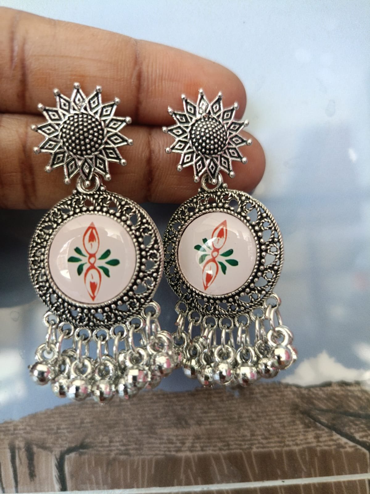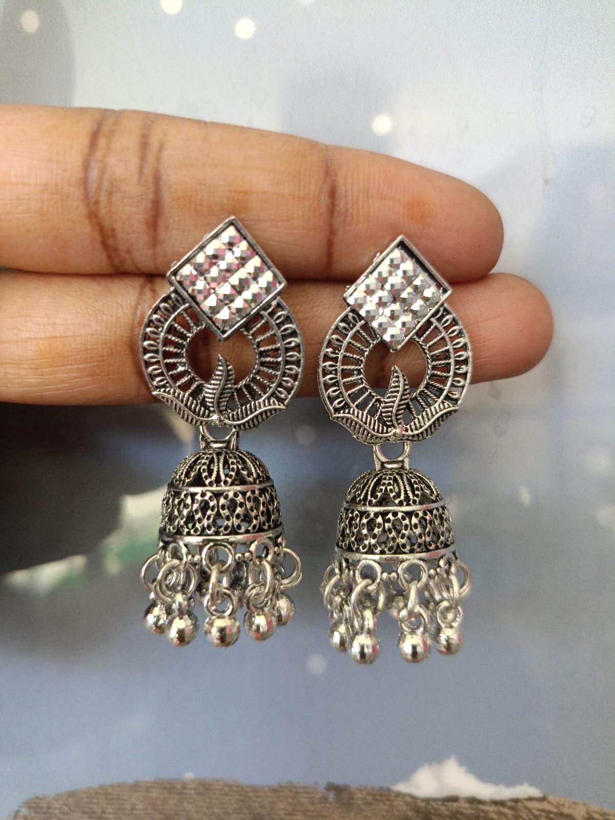 - Step into tradition with a modern twist. These oxidized silver jhumka earrings are a tribute to timeless Indian artistry, featuring ornate craftsmanship and a vintage-inspired finish.