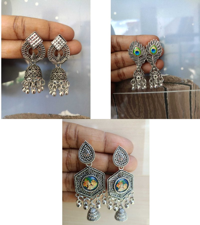 - Jhumkas are traditional ethnic antique earrings, combo set for women