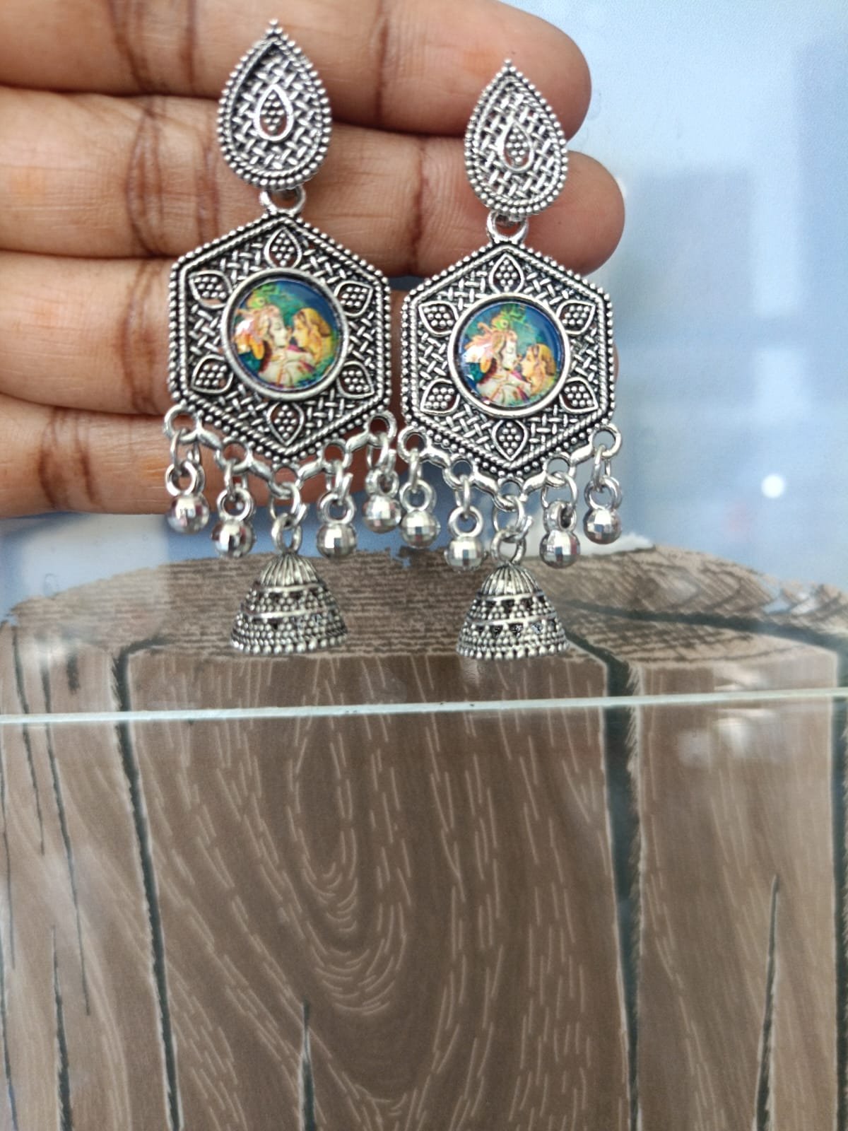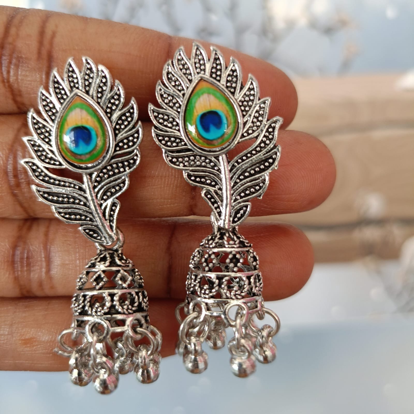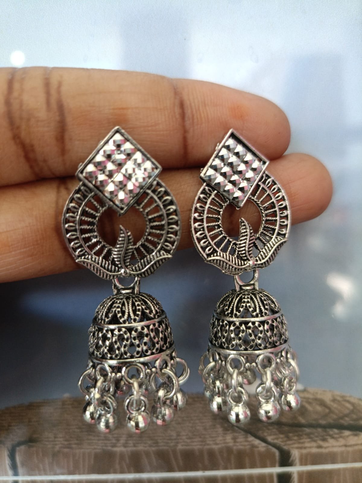 - “Step into tradition with a modern twist” These oxidized silver jhumka earrings are a tribute to timeless Indian artistry, featuring ornate craftsmanship and a vintage-inspired finish
